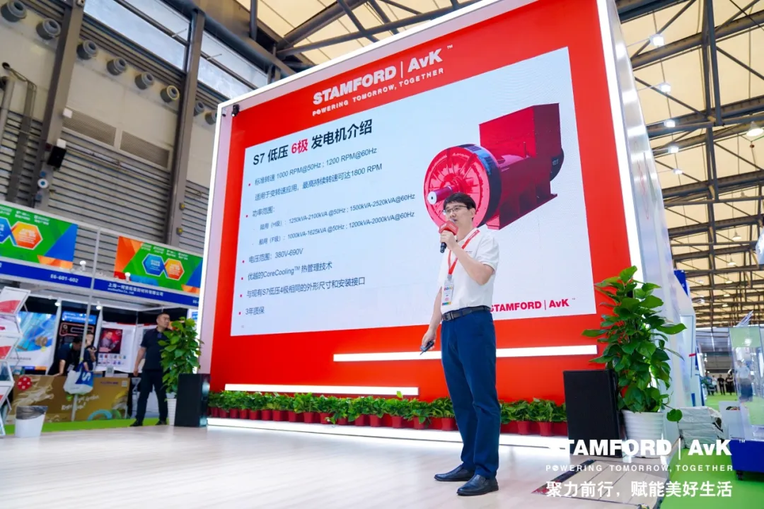 创新动力界|STAMFORD | AvK™携新品亮相上海动力展 Published On: June 26, 2024 Body 2024年6月25日,第23届上海动力展(GPower)在上海新国际博览中心盛大开幕,STAMFORD | AvK™携强大的新品阵容,亮相本届展会。展会首日,康明斯电力全球执行总监Vipul Tandon先生,康明斯发电机技术中国区总经理范盘华女士,康明斯动力系统中国区电力业务总经理杨辉,康明斯发电机技术全球市场总监Roxanne Bonin等领导层均亲临展馆,同我们的合作伙伴热情交流。 斯坦福®(STAMFORD®)发电机在25日上午举办了备受瞩目的S9产品线拓展和S7 6极机新品发布会。本次发布会由康明斯发电机技术中国区销售总监钱海兵先生主持。 康明斯发电机技术中国区总经理范盘华女士向来宾致欢迎辞,表达了对各位合作伙伴长期以来并肩同行的感激之情,并表示今年是斯坦福®(STAMFORD®)品牌成立120周年的重要里程碑,回顾了品牌的发展历程和对行业的深远影响。 随后,康明斯发电机技术中国区总经理范盘华女士,中国区工程总监王佳先生,邀请客户领导共同进行了新产品的发布仪式。 斯坦福®(STAMFORD®)发电机工程团队的资深工程师们也对本次发布的S9产品线拓展和S7 6极机进行了详细的介绍。 其中,S9高压系列产品一直是斯坦福®(STAMFORD®)的明星产品,继去年动力展上发布S9高压高海拔发电机之后,今年斯坦福®(STAMFORD®)再次对S9高压系列产品线进行了扩充,其电压现可覆盖13.8kV,10.5kV,6.3-6.9kV,3.3kV,而新增加的G/H铁芯也将S9产品系列的功率范围从3700kVA提升到了4500kVA。 另一款发布的重量级产品为斯坦福®(STAMFORD®)S7 6极机,它是广受赞誉的S7产品家族的最新成员,可以应用在中速机领域。其陆机涵盖1250-2520kVA功率段,船机涵盖1000-2000kVA功率段。其经过长时间严格的设计开发和验证过程,设计理念融合STAMFORD®和AvK®产品的优势,并进行整合优化,是一款全球开发的产品。它具有充分且严谨的电磁设计、机械分析和热分析,并通过了超过800小时的性能验证和可靠性测试。作为S系列家族的新成员,S7 6极机同样具备3年质保和全球服务网络,同时丰富的配置也让它可以应用在多个领域使用,包括主用、备用、船用、数据中心、热电联产、电网和孤岛电站等。 新品的成功发布,不仅是对斯坦福®(STAMFORD®)发电机品牌120年历史的致敬,更是对未来发展的展望。斯坦福®(STAMFORD®)将继续以“创新不竭,成就客户”的精神和态度,为全球动力行业贡献力量。 本次动力展将一直持续至6月27日,欢迎大家莅临上海新国际博览中心E6-011斯坦福®(STAMFORD®)展台,近距离了解我们的产品,并同我们的专业团队进行更深入的交流。 语言 Chinese, Simplified